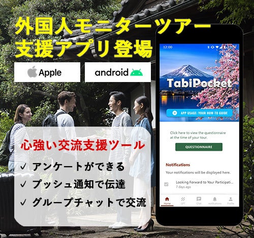 また、各地のモニターツアーやトライアルツアーのご紹介する「TabiPocket」アプリは、