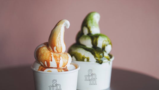店名の由来となるピンクベージュの朝焼けをイメージしたクリームソーダ。