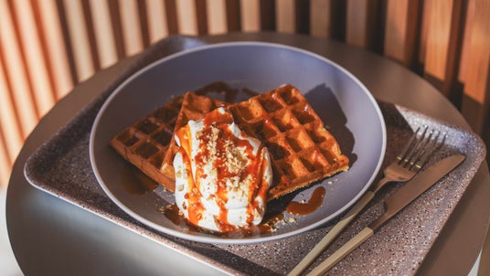 si no no me では、1日のどのシーンでも空間をゆっくりとお楽しみいただけるドリンクメニュー、フードメニューをご用意しております。ワッフルは店内のキッチンでオーダーを受けてから都度焼き上げ、いつも焼きたて。淹れたてのコーヒーとともにお楽しみいただけます。