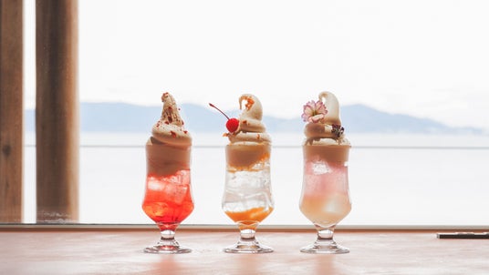 真っ赤な夕景をイメージしたザクロ風味のさっぱりとしたクリームソーダ。