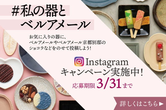 皆様のお気に入りの器にあわせたベルアメール・ベルアメール 京都別邸のショコラやお菓子の写真を投稿ください。「ベルアメール」と「ベルアメール 京都別邸」の扱うチョコレートやすべてのお菓子が対象となりますので、是非ご応募ください。