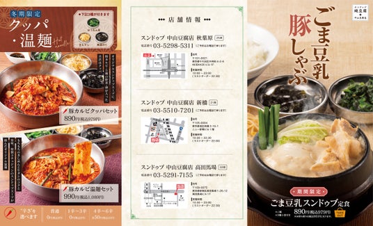 本格的な寒さが身にしみる冬本番に、スンドゥブ定食専門店「中山豆腐店」にて期間限定で"唯一辛くない"スンドゥブ定食「ごま豆乳スンドゥブ定食」を2024年1月24日(水)より販売を開始いたします。