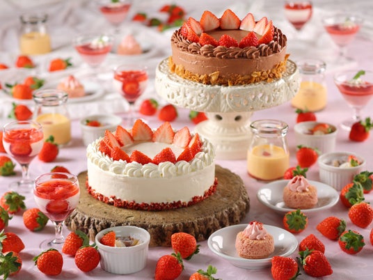 また、デザートコーナーでは旬のイチゴをふんだんに使用した華やかで可愛らしい特製スイーツをご用意しております。