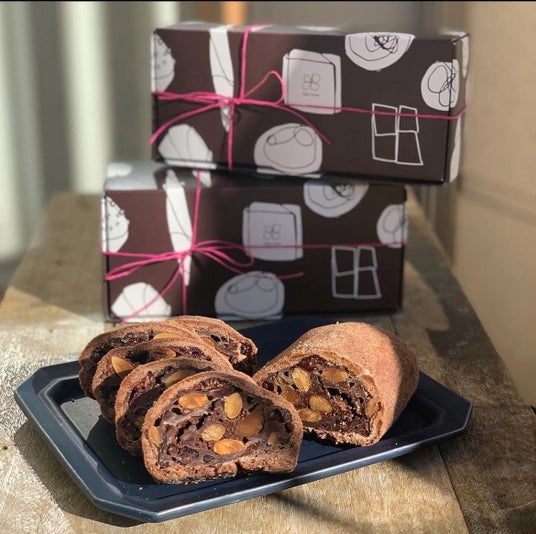 バレンタイン限定の"シュトーレン"。フランス産カオカ社、カカオ濃度の違う3種類の有機チョコレートと自家製カカオダマンド、オーガニックドライクランベリーと