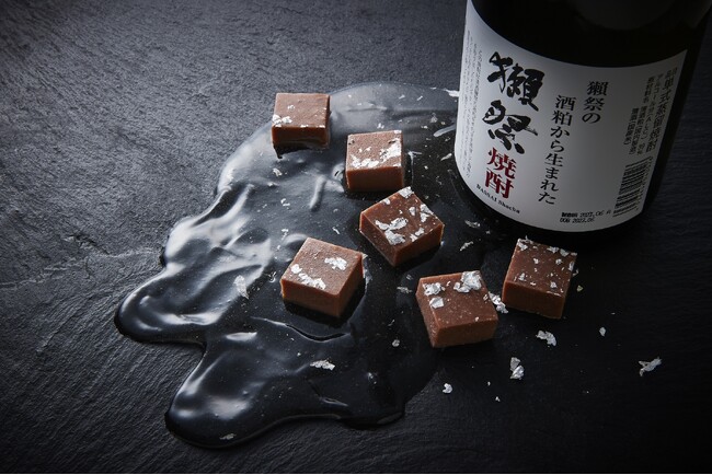 獺祭焼酎とカカオの融合をイメージし、マダガスカル産やベリーズ産カカオの自家製チョコレートを使い、口どけなめらかな「生 ショコラ」に仕上げました。口中でとろけるにつれ広がる獺祭焼酎の香りが、フルーティーな香りからゆっくりと変化する余韻をお楽しみください。