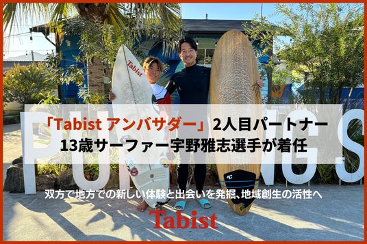 観光・宿泊産業のDXを推進するTabist株式会社(本社:東京都港区、代表取締役社長 兼CEO:田野崎亮太、以下:Tabist)は、2022年6月に地方での新たな出会いの創出や地域活性につながる取り組みを行う「Tabistアンバサダー」(旧「Discover Tabist プロジェクト」)を発足しました。1人目には、Tabistと共通の理念を持つ方としてパートナー・プロ山岳ランナーの上田瑠偉選手が着任。今回2人目のパートナーとして、13歳ながら国内外で活躍するサーファーの宇野雅志選手が着任したことを発表します。