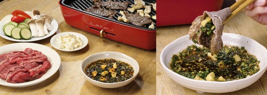 3.「ジャン 焼肉の生だれ」を使用したアレンジレシピとして平日向けメニュー「生だれジューシー焼肉丼」、休日向けメニュー「マヌルバギ」を提案しています。マヌルとは韓国語で「にんにく」を指し、マヌルバギは、にんにくと食べるモランボンオリジナルの韓国式薄切り焼肉です。