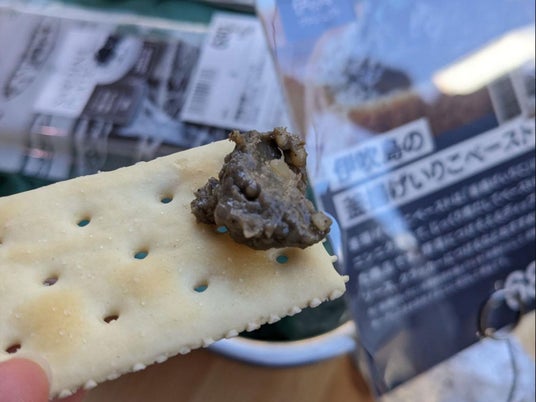 クラッカーの上にのせた『釜揚げいりこペースト』