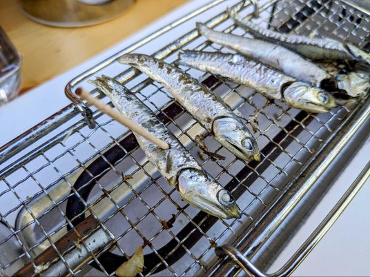 『釜揚げいりこ』は、網の上で温めたものを提供しました。温めるとホクホクしてより美味しくなります