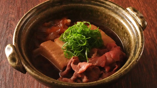お肉に松阪牛を使用した贅沢な肉豆腐。松坂牛を番屋特製の甘めの割り下でさっと煮て、柔らかく仕上げました。お酒はもちろん、白米とも合う一品です。