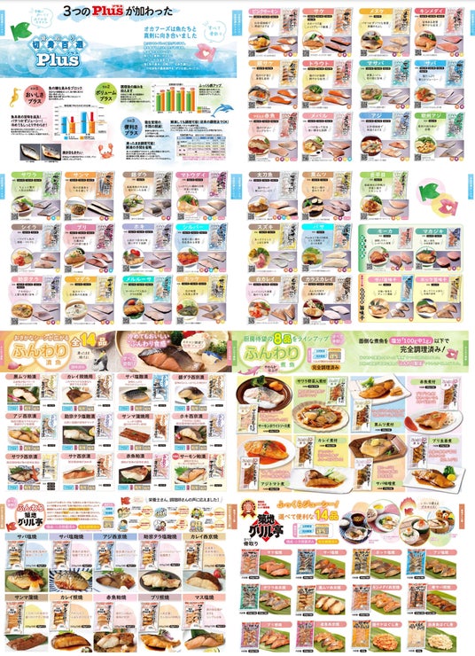 既存ラインの「切身百選Plus」のラインナップに、1切30gと40gのサイズで8魚種12規格が追加になりました。保育園や幼稚園などの子どもたちに食事を提供している現場で働く方々へのヒアリングから生まれた「切身百選PlusMini」は、現在オカフーズのECサイトで先行好評発売中です。