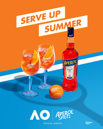 全豪オープンは、夏のオーストラリアにおける最大のイベントであり、アペロールスプリッツも夏にふさわしいドリンクであることから、これらは完璧なパートナーシップと呼べるでしょう。オーストラリア国内最大級の観客動員数を誇るスポーツの祭典で、テニスの素晴らしさや熱狂をアペロールともに広められることにとても興奮しています。