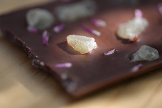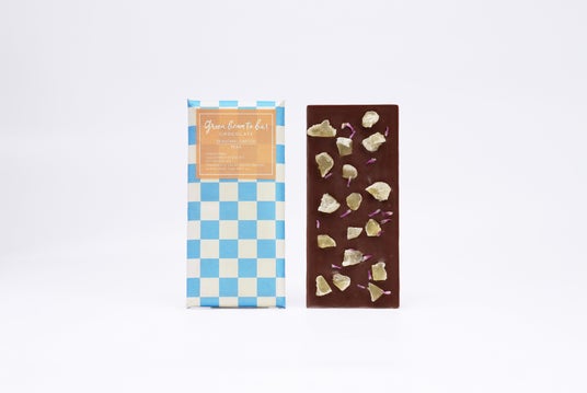 ベースはペルー産パロ ブランコのミルクチョコレート。昨年ビーントゥバーの世界大会で受賞を果たしたもの。ベルガモットで香りづけしたアールグレイのパウダーを練り込み、トッピングにドライの洋梨とエディブルフラワーで食感と華やかさをプラス。紅茶と洋梨の相性が抜群で、甘党のあの人にはこれ、と想像がふくらむチョコレート。