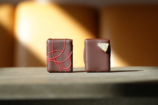 下に洋梨、上に紅茶のガナッシュの2層構造。食べた時に、ジューシーな洋梨が最初に舌に当たるように緻密に計算されている。遅れてアールグレイの香りとまろやかな甘みが全体を包みこむ。仕上げにトッピングしたドライ洋梨のしっとりとした甘い果肉と芳醇な香り。一粒で3度美味しいボンボンショコラ。