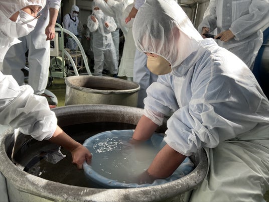 2024年1月14日(日)に兵庫県の山田錦生産者とJA・行政(※1)が主催する“二十歳の山田錦物語”プロジェクトの一環で、地元兵庫県の大学生13名が白鶴酒造の本店二号蔵での酒造りを体験し、酒造工程について学びました。学生たちは、2月に地域との交流会で完成した日本酒をお披露目し、3月の「吉川山田錦まつり」でその日本酒を販売する予定です。