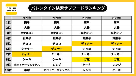株式会社エブリー(本社:東京都港区、代表取締役:吉田 大成)が運営するレシピ動画メディア『DELISH KITCHEN』は、2月14日のバレンタインに向けてユーザーアンケートや検索データの分析からトレンド予測を実施し、最新バレンタインレシピを開発しました。