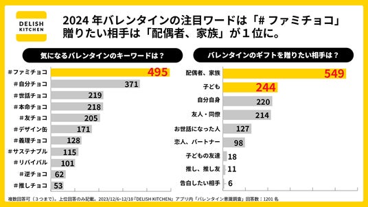 『DELISH KITCHEN』のアプリユーザーにアンケートを実施したところ、今年のバレンタインで気になるワードは、「#ファミチョコ」(家族に贈るチョコレート)が1位、「#自分チョコ」が2位となりました。