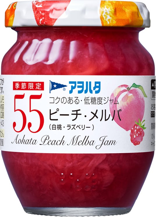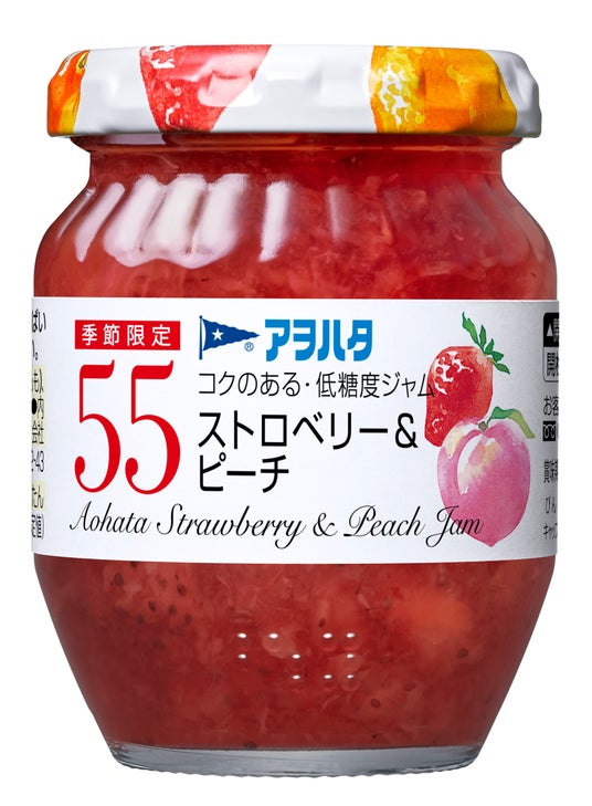 アヲハタ株式会社(本社:広島県竹原市、代表取締役社長:山本範雄、以下アヲハタ)は、フルーツ本来の色と香りにこだわったコクのある低糖度ジャム「アヲハタ 55」シリーズから、「ストロベリー&ピーチ」を春夏の季節限定品として新たに発売します。