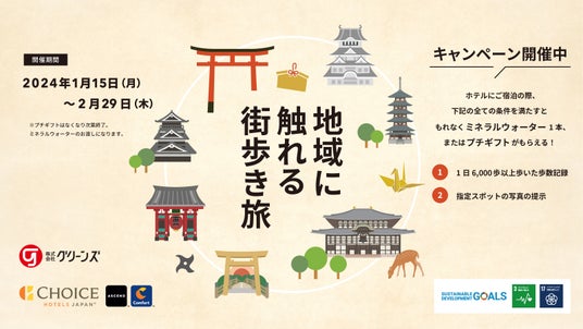 この結果を受け、お客様に体を動かす楽しさを提供することで、健康づくりに寄与するとともに、ホテルの立地など特性を活かした新しいサービスとして6,000歩を目安にした「街歩き旅」キャンペーンを実施します。今回のキャンペーンはお客様が観光地や出張先のホテルでアクティブに楽しむことで、健康習慣を身に付けるきっかけを提供することを目的としています。