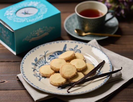 ブルボンバニラの香りを最大限引き出す配合にこだわっています。アーモンドプードルと隠し味のお塩で、さっぱりとしながらも深い味わいです。ブルボンバニラの芳醇な甘い香りと、さっくりとしたクッキー、食感のアクセントにザラメが加わり、止まらない美味しさに仕上がりました。12個入はハチドリが印象的な缶に入って、プレゼントにもおすすめです。