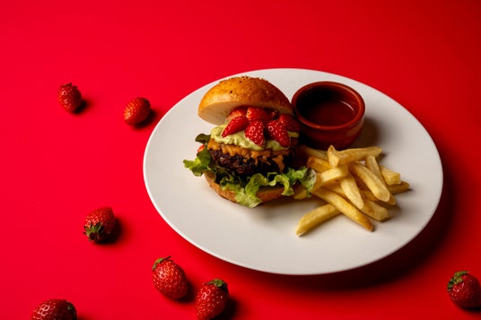 お子様も一緒に楽しみいただけるように、いちごのハンバーガーやフレンチフライなどを盛り合わせたキッズプレートをご用意。