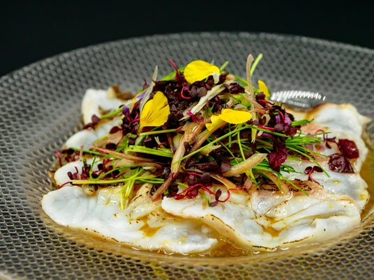 今月の前菜は、真鯛の炙りカルパッチョ。