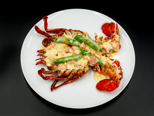 ロブスターをまるまる一尾、殻付きでローストして旨みをギュッと閉じ込めた贅沢な一品。
