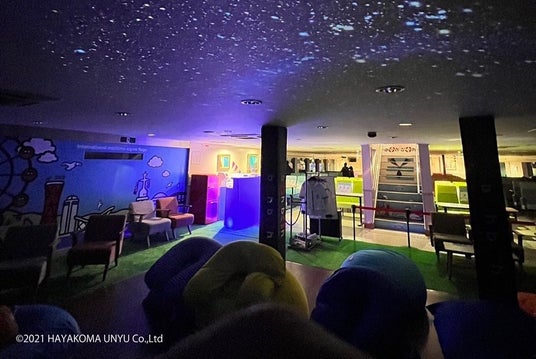 boh boh KOBEならではの船上プラネタリウム体験! 船内の照明を消灯し、数々の賞を受賞したプラネタリウムクリエイター大平貴之氏によるプラネタリウムを映し出します。 光るバーカウンターや