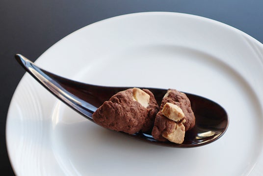 ココアのグラサージュでコーティングしたムースの中にふわっと香るミントクリームがポイントです。