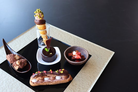 「ショコラのデクリネゾン」はプレートにひとつひとつパティシエが趣向を凝らして考案した5種類のチョコレートスイーツを盛り付けています。