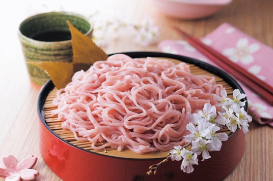 人気の本生そば、本生ざるうどんに「桜葉 パウダー」を練りこみました。桜餅のよう な香りと薄紅色をした色鮮やかな本生 そばです。淡いピンク色の麺が食卓を華やかに彩ります。春の祝い事の贈り物としてもおすすめです。