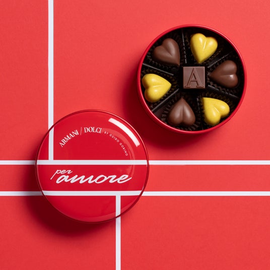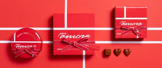 パッケージには、深みと光沢のある赤と、「和」のデザインを彷彿とさせる対照的な白のグラフィックモチーフがあしらわれ、イタリア語で「per amore(愛のために)」の文字が記されています。