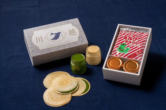 ギフトアイテムに加え、川越散策中のおやつにお楽しみいただきたい、レトロなジャムせんべい(1set 350円)の販売もスタート。お好みのジャムを挟んで提供いたします。