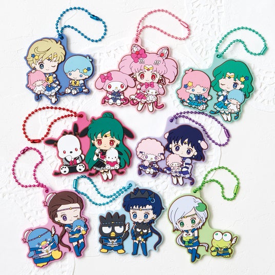「美少女戦士セーラームーン」シリーズとサンリオキャラクターズを愛する全てのファンの皆様へ、「夢」と「希望」をお届けしたいという想いでサンリオのデザイナーが描き下ろしたイラストを、各セーラー戦士のイメージカラーをベース色にラバーマスコットで再現しました。