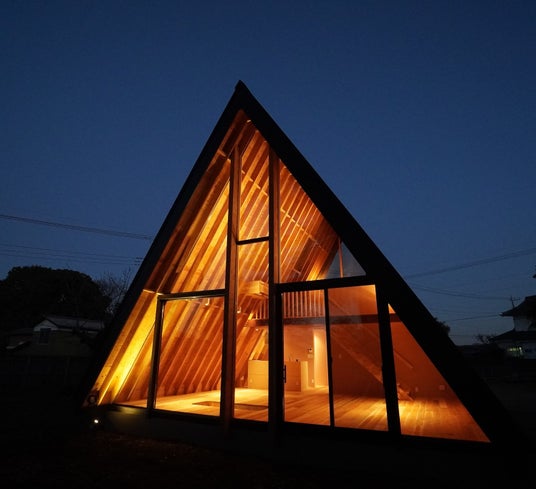 Aフレームとは、屋根と壁が一体になった三角形の構造で、日本ではまだ珍しい建物です。