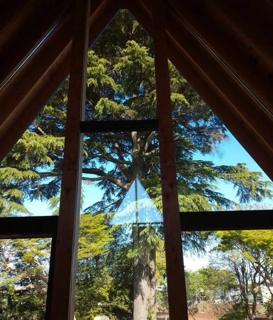 シンボルツリーである、樹齢約120年のヒマラヤ杉が敷地内にあります。Aフレームの家から眺めるヒマラヤ杉は、圧巻の景色です。ヒマラヤ杉が見える家というところから、