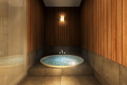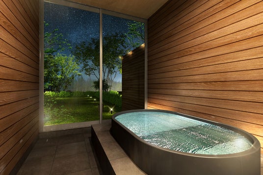 各お部屋には贅沢に天然温泉を配湯した客室温泉風呂を完備。「美肌の湯」として美肌効果が期待できる無色透明のとろりとしたお湯を、ご滞在中何度でも心ゆくまで。日々の疲れを癒す、贅沢な時間をお過ごし下さい。