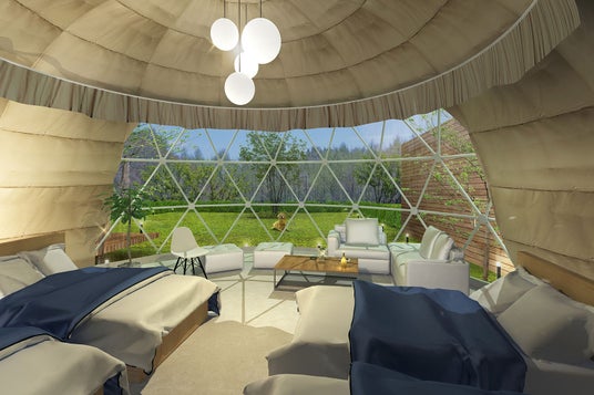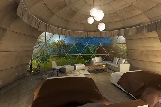自然と調和する全7棟の客室は、広々快適なドームテントとスタイリッシュな