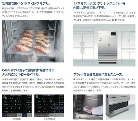 - 飲食業界の多様な冷却ニーズに対応し、食品の品質と安全性を高いレベルで保持します。