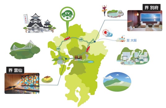 船上や、宿泊施設でEV車を充電し、自然豊かな九州の絶景ポイントを巡る4泊5日の宿泊プランです。絶景ポイントを巡る施設間の移動は、各所でEV車の充電ができるよう充電アシストつき絶景モデルコースを提案し、EV長距離初心者でも安心して旅することができます。船上やドライブ中での絶景を楽しむことはもちろん、界 別府や界 雲仙の施設では、温泉や食事などご当地の魅力を満喫することができます。当プランは、「界」と株式会社商船三井のグループ会社である株式会社フェリーさんふらわあ(本店:大分県大分市・社長 赤坂 光次郎、以下「フェリーさんふらわあ」)の共同企画です。
