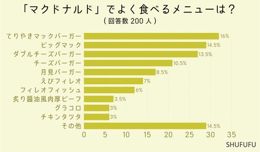 マクドナルドでよく食べるバーガーメニューの1位は「てりやきマックバーガー(16%)」、2位「ビッグマック(14.5%)」と古くから提供され続けている定番のバーガーメニューがランクインしました。