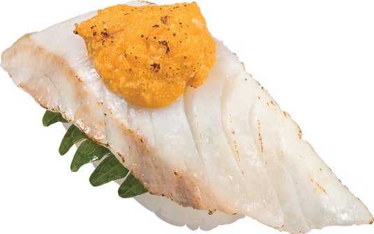 活〆真鯛に「うに」をのせて炙ることで、「うに」の甘みや香りが引き立ち、活〆真鯛のふっくらした食感も楽しめます。