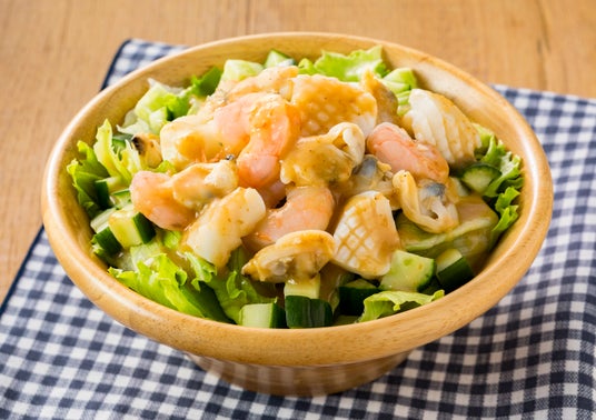 メニュー例:シーフードとレタスときゅうりのサラダ