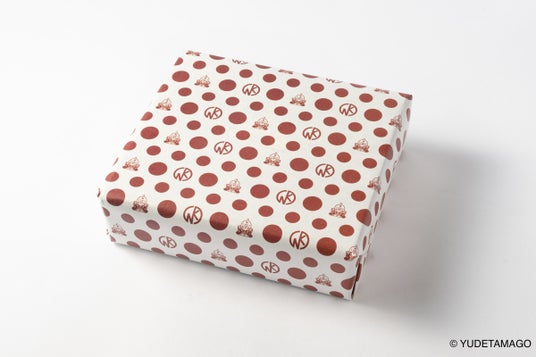 「福(29)助」に扮したキン肉マン印の化粧箱に詰め合わせの上、KINマークとキン肉マン(福助)デザインのオリジナルの包装紙で包み、鹿児島よりお届けします。