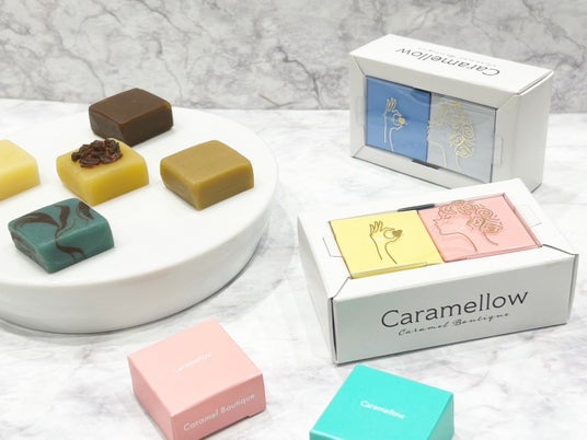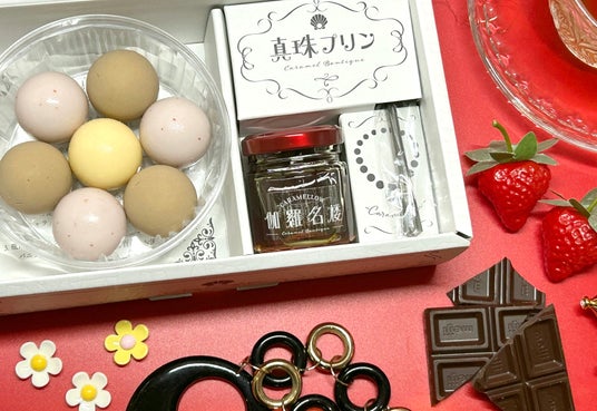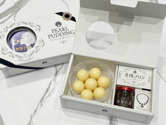 Caramel Boutique 伽羅名楼は、新商品のJewelryCaramel『ジュエリーキャラメル』(全12種)販売スタートを記念して、店頭では3,000円以上お買い上げ+インスタフォローで。オンラインでは「真珠プリン×ジュエリーキャラメル9個入り」のセットをご購入のお客様に「ジュエリーキャラメル2個入りパックプレゼントキャンペーン」を開催します。