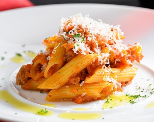 ラムを香味野菜で煮込んだラグーソースを使ったパスタ。ラムの濃厚な味わいが楽しめます