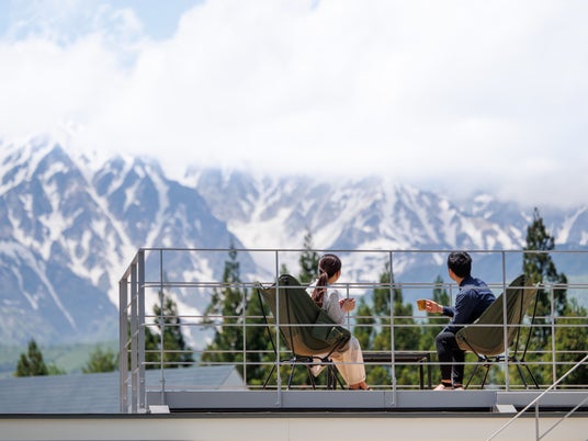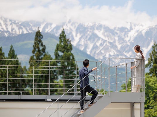 ・白馬三山を一望する「テラス」と「屋上デッキ」