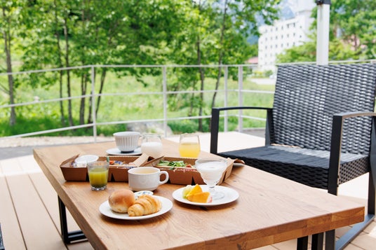 ホテル棟から毎朝手作りの朝食をお部屋にお届けします。地元の素材にこだわった「信州里山ご飯」は、どこかほっとするような優しい味わいでボリューム満点です。