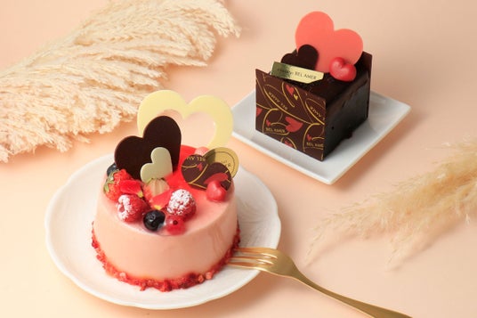 ベルアメールの常設店ではバレンタインに向け、チョコレートの味わいを存分に楽しめるプチガトー「リュクスボヌール」やバレンタインをイメージしてハート型のチョコやベリーで華やかに仕上げたアントルメ「アムールベリー」をお届けします。