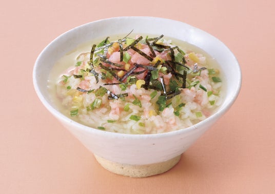 新商品は、たらこの味わい、だしのうま味、ゆずの香りが三位一体となって感じられるのが特徴です。口に入れてすぐたらこのうま味が広がり、続いてやさしいだしのうま味、最後に鼻に抜けるようなゆずの果皮の香りを味わえます。加えて、青ねぎ・かつお節・ごま・のり・あられの5種類の薬味がアクセントとなり、味や香りと共にさまざまな食感を楽しめます。